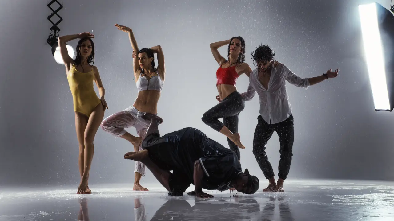 Adult Commercial Dance dancers during a video recording in a studio